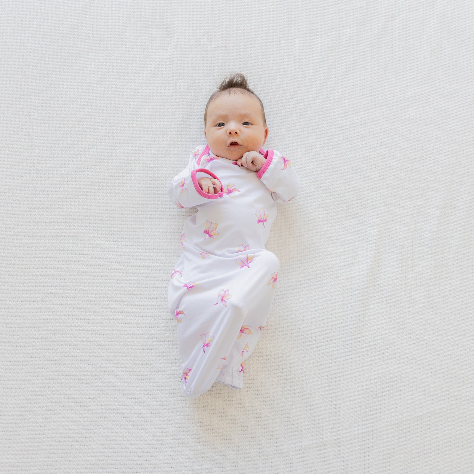 Diaper changes just got a whole lot easier! Our Layette Gown features an elastic opening at the bottom that is ideal for quick and easy diaper changes…no more fussing with snaps, zippers, or ties in the middle of the night! The sleeves also include fold-over mittens to prevent baby from accidentally scratching themselves. And as always, our signature, buttery soft fabric made from bamboo viscose is perfect for your baby's soft and sensitive skin.