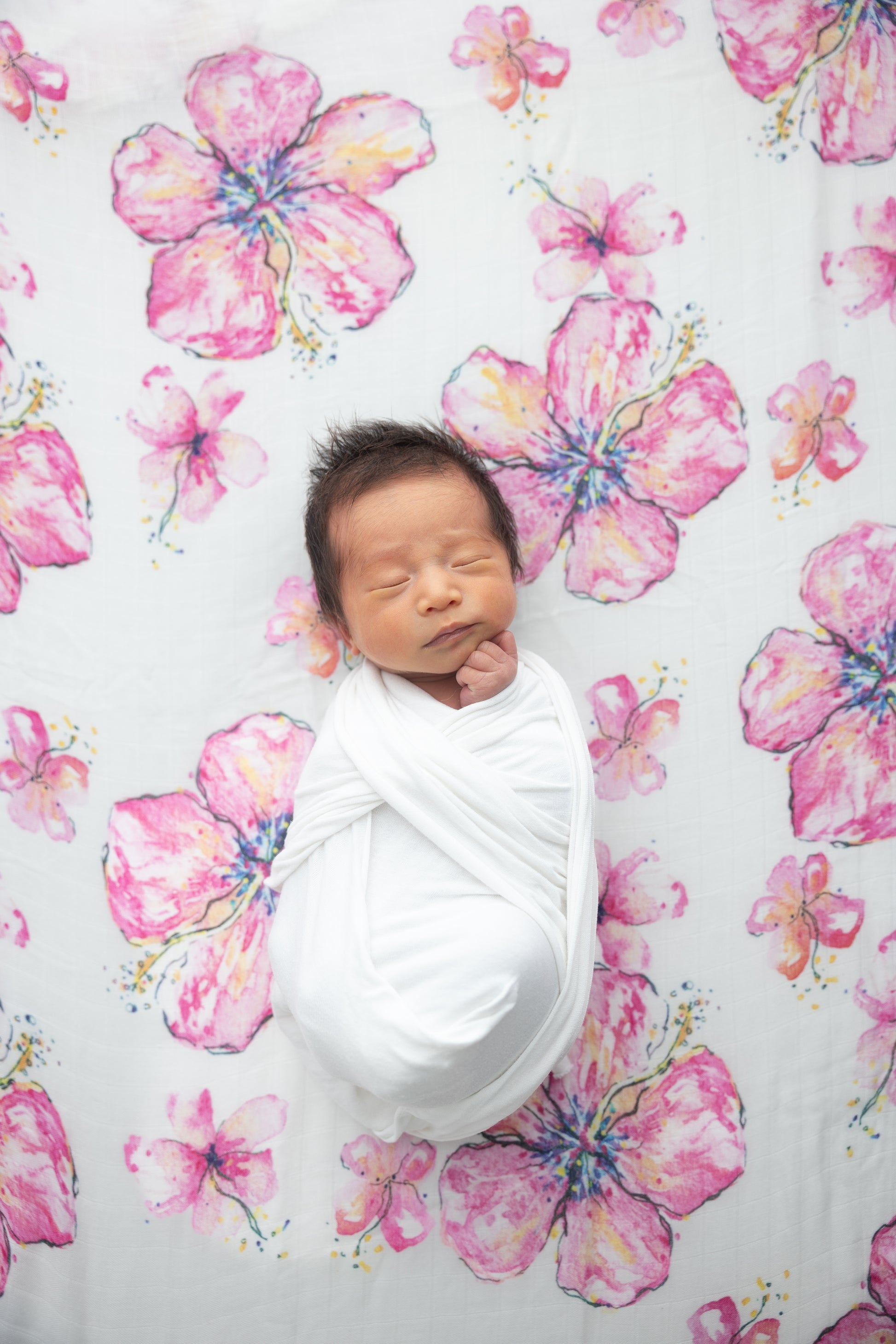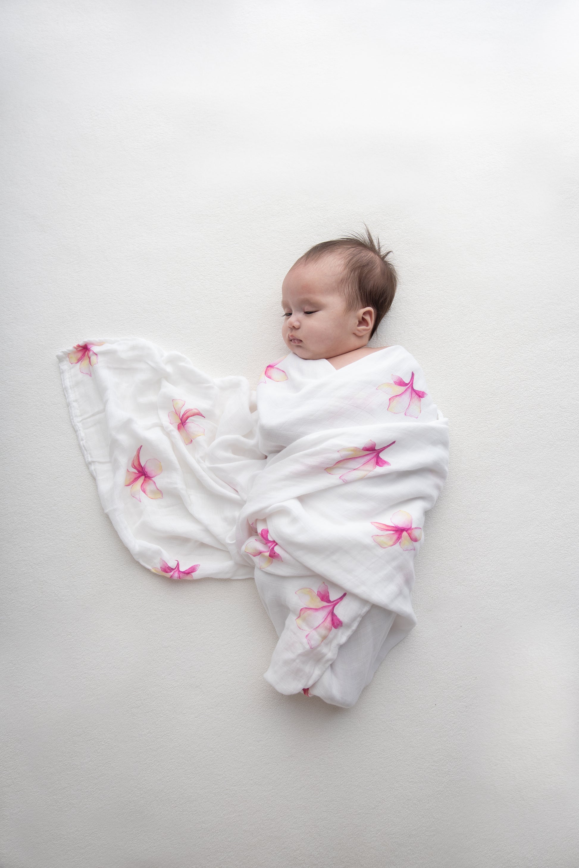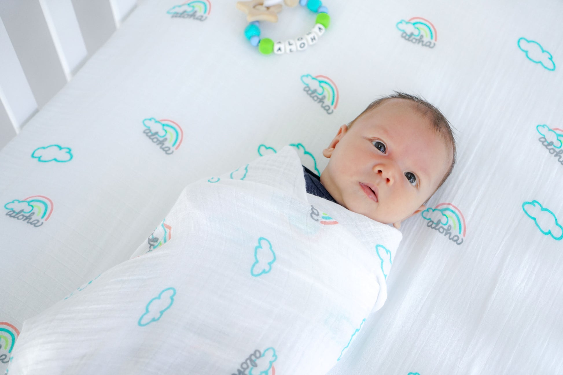 Extend the warmth and comfort of a hug with a heavenly Coco Moon Hawaiʻi muslin swaddle blanket that's buttery soft and gentle on baby's sensitive skin.